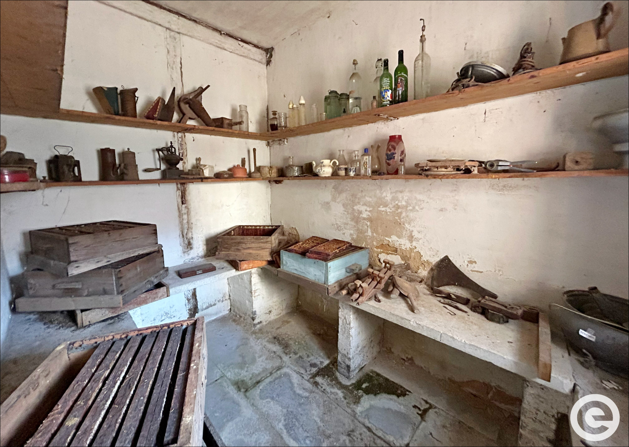 Une pièce ou arrière-cuisine avec tomettes,