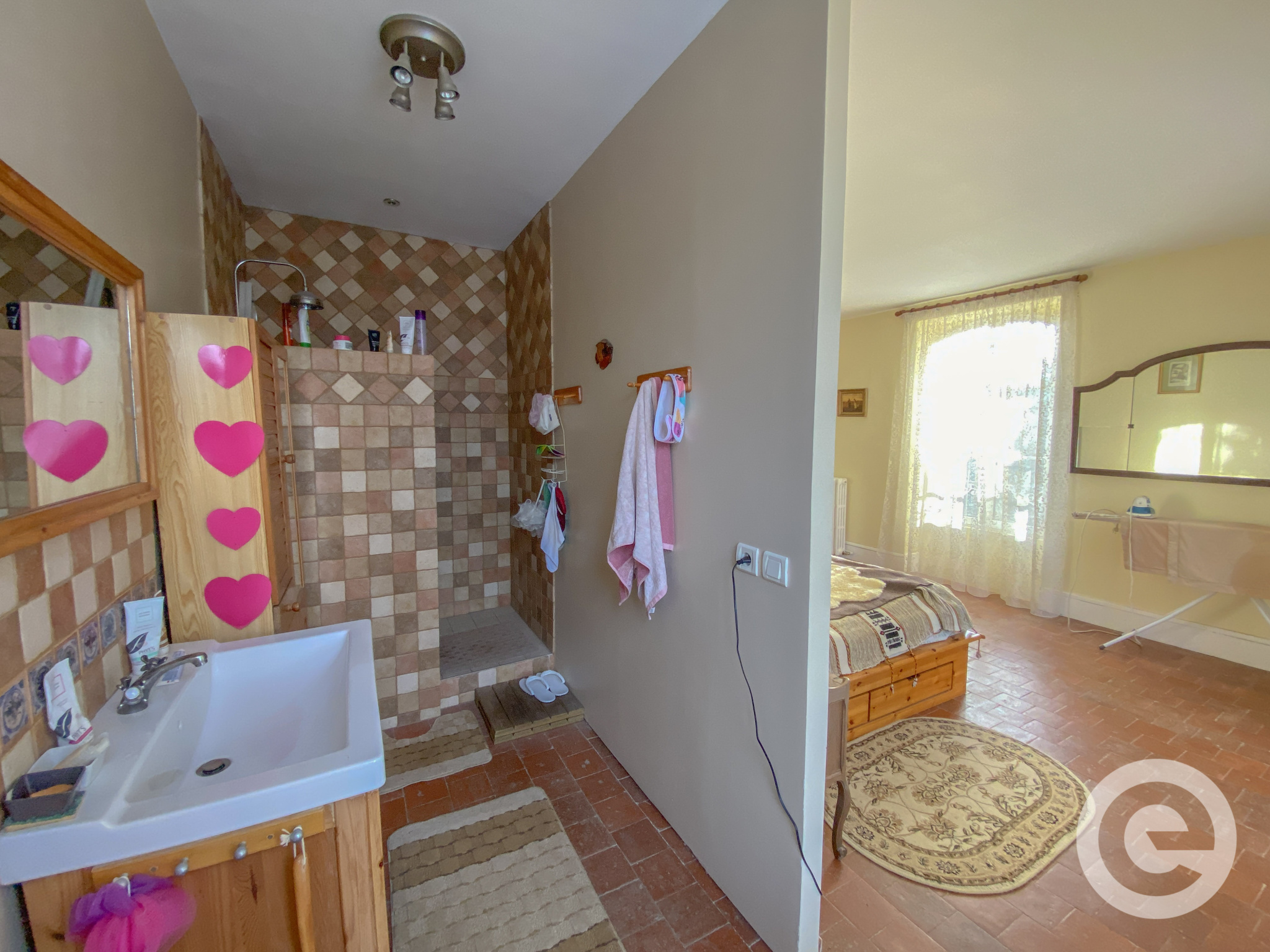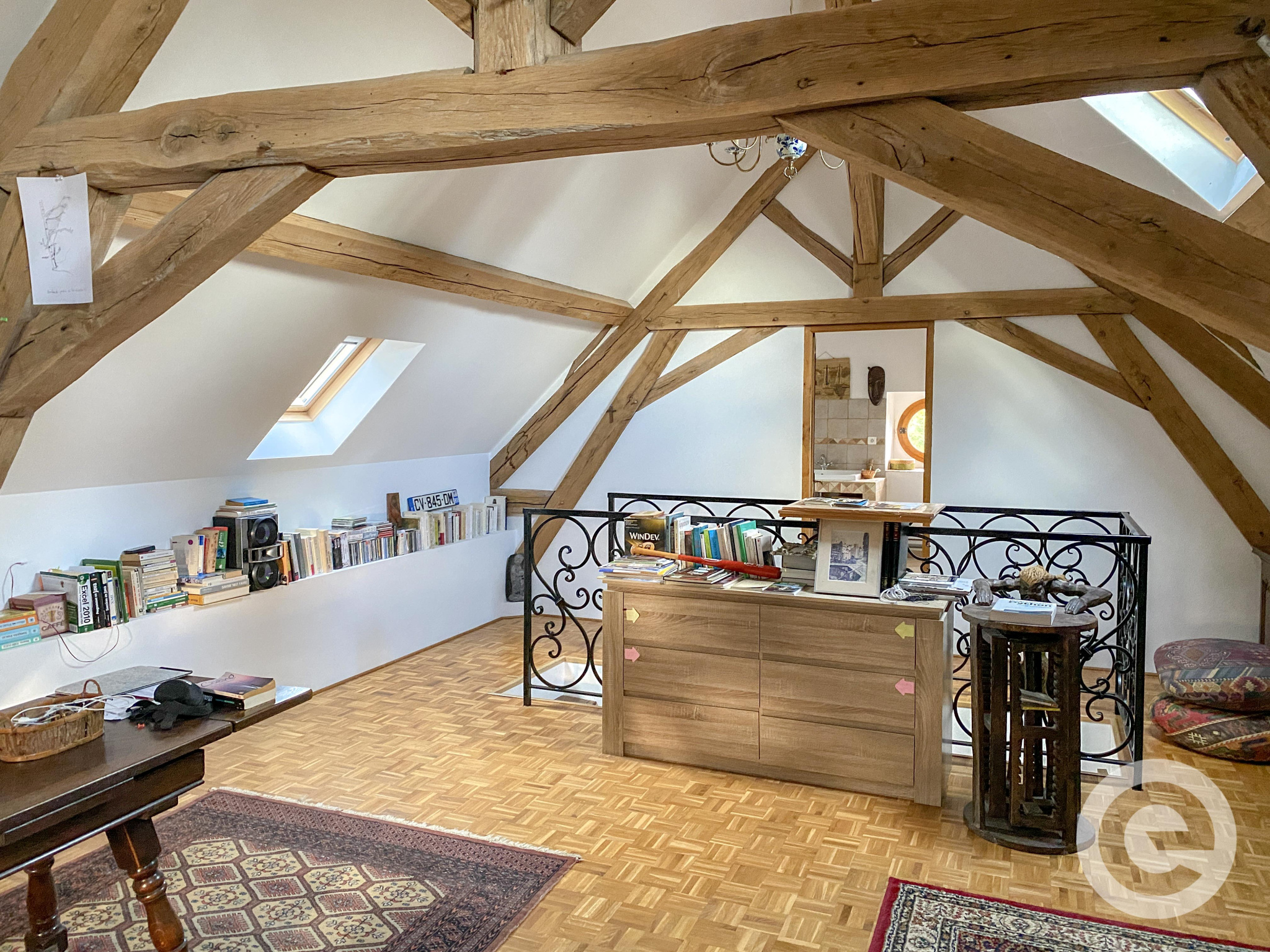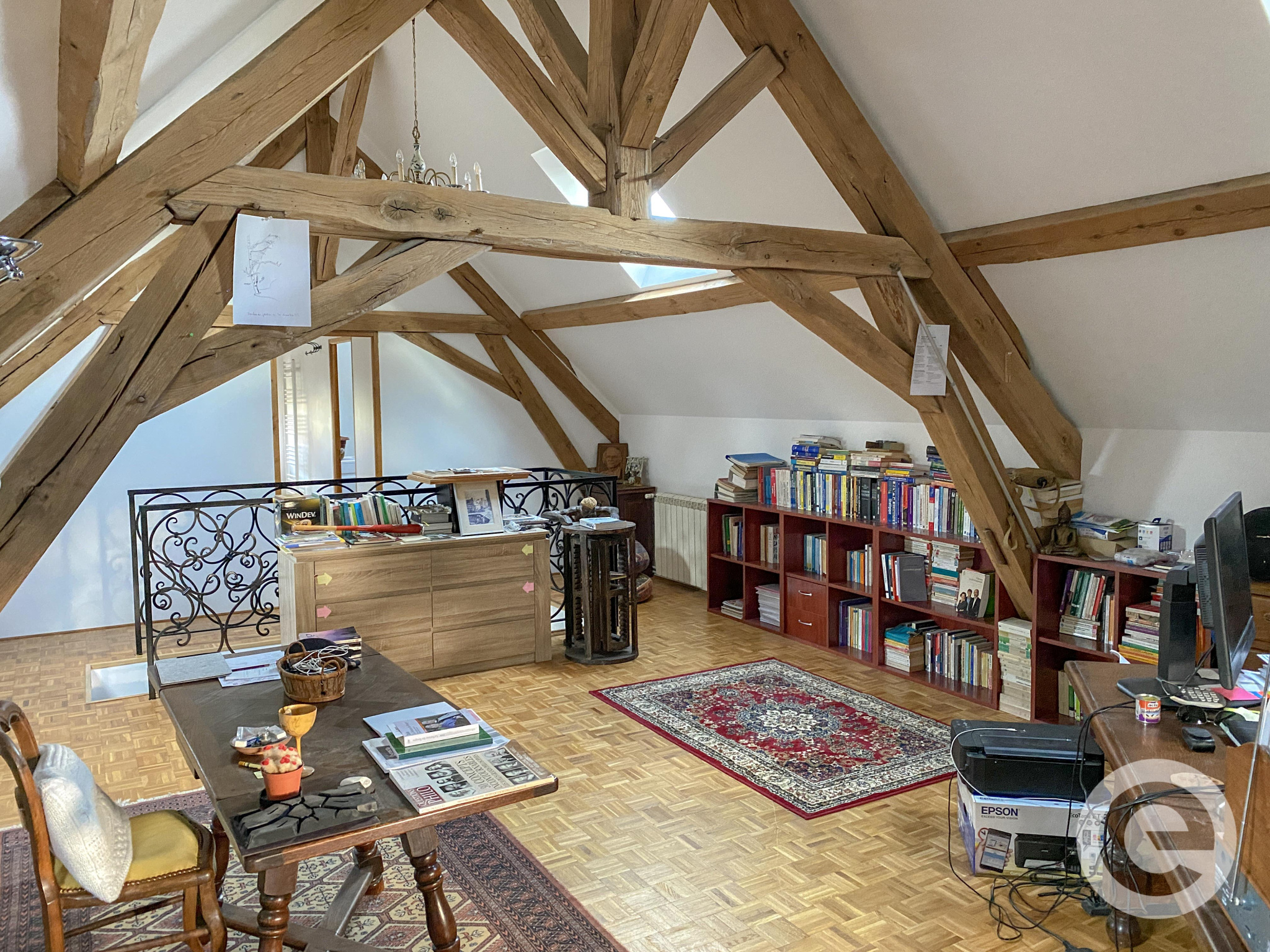 Au premier étage, un palier dessert deux grandes chambres de 29 m² et 31 m², chacune disposant de sa propre salle d’eau avec WC. Le deuxième étage comprend une vaste pièce de 35,4 m² pouvant faire office de bureau ou de chambre, complétée par une salle de bains de 10 m² avec WC ainsi qu’une buanderie.