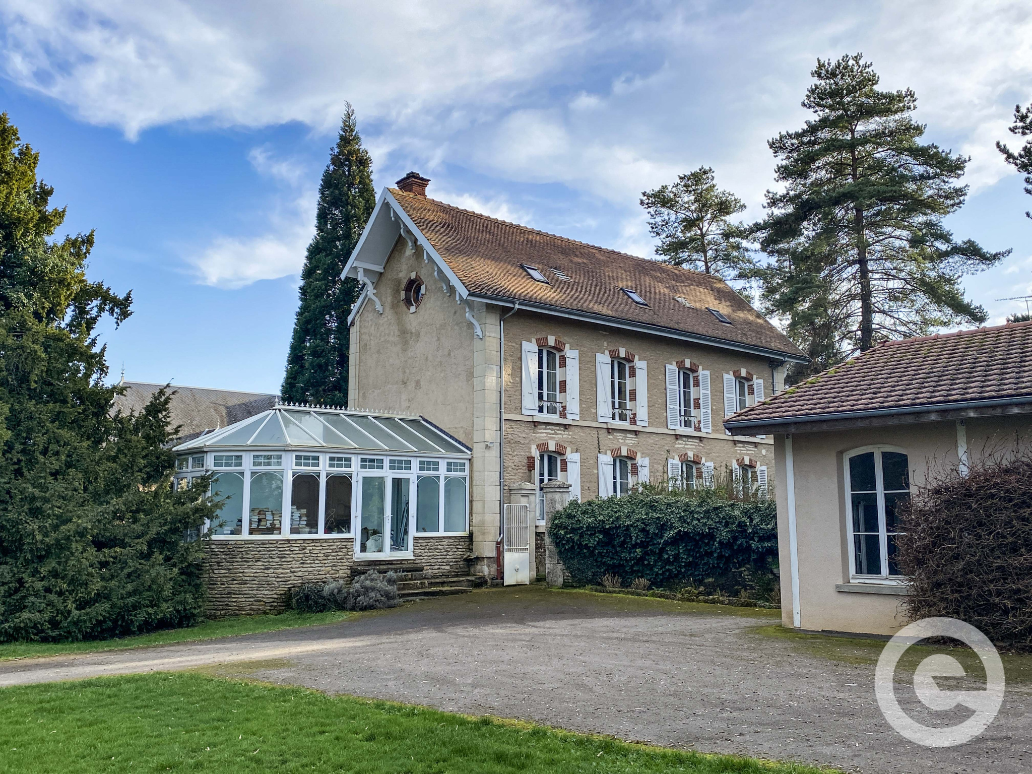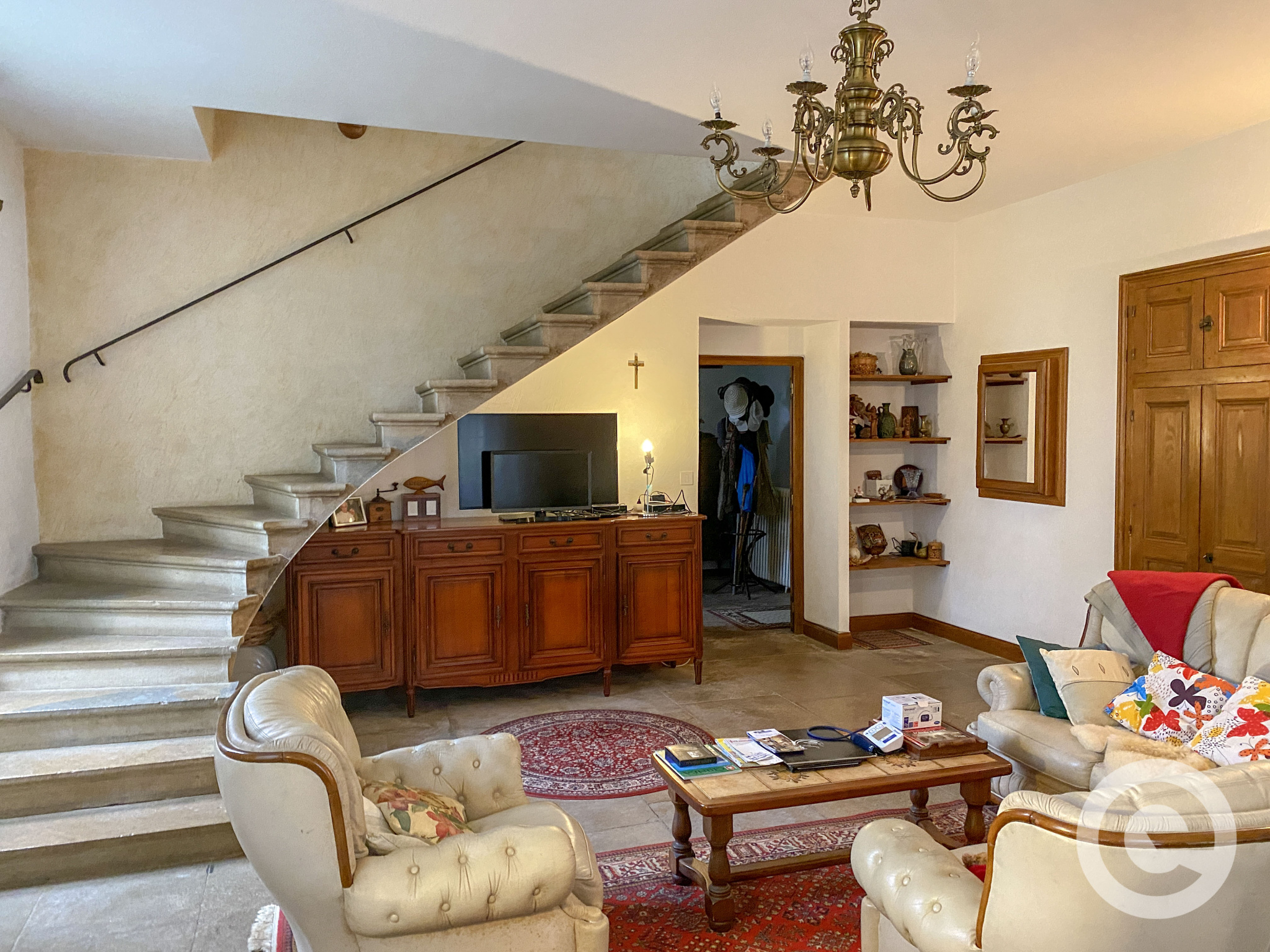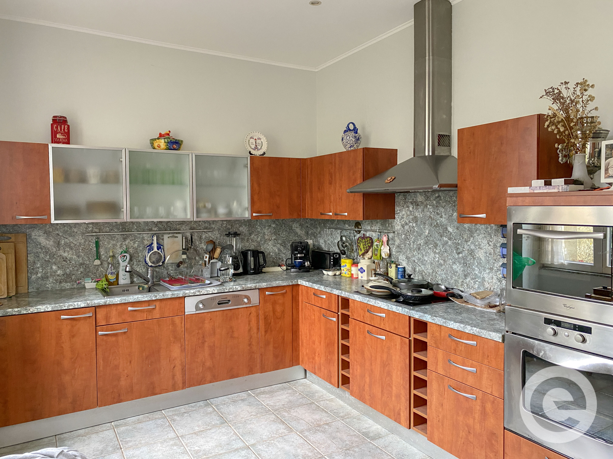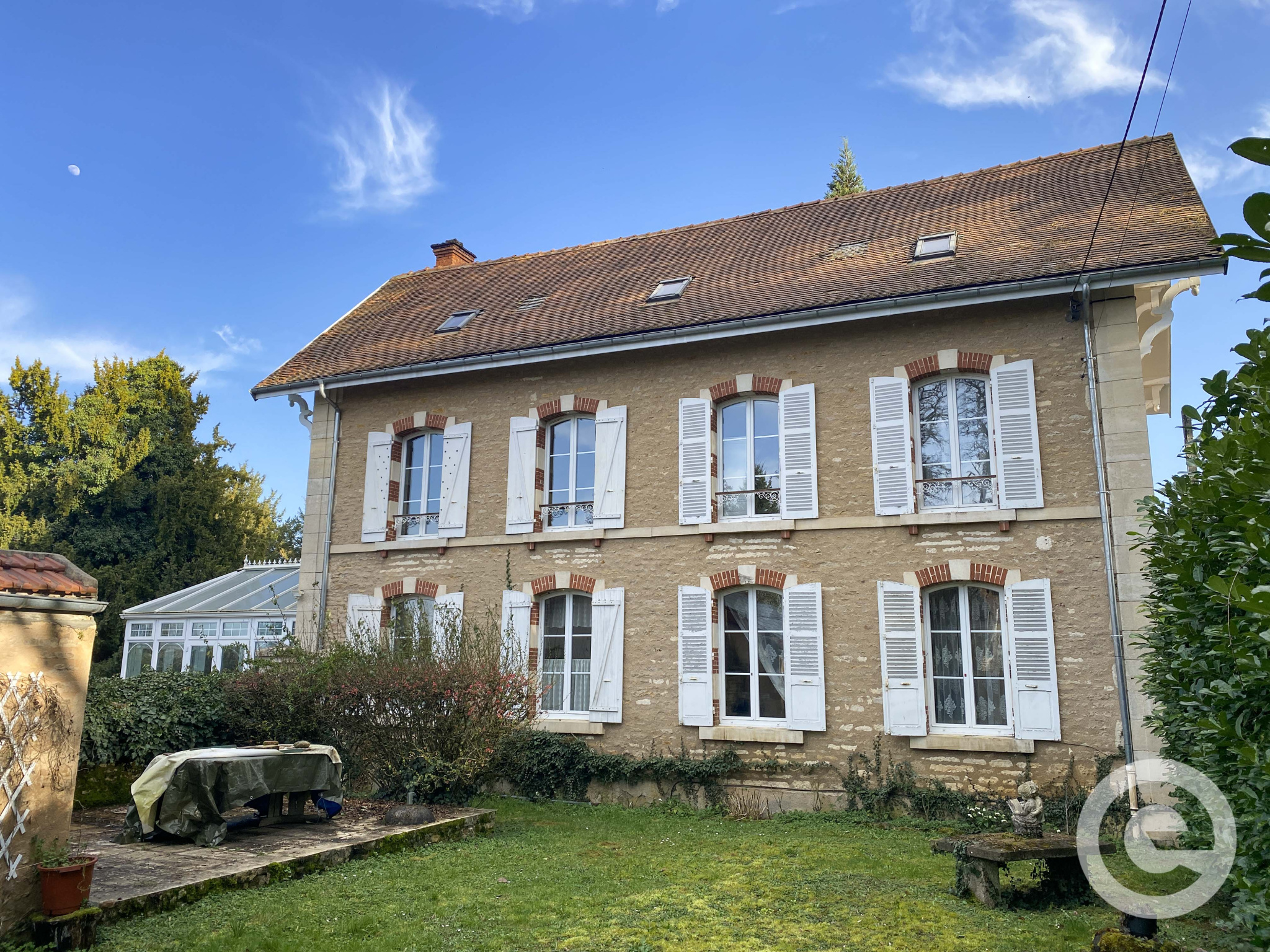 Le rez-de-chaussée comprend une belle véranda de 25 m², une entrée de 11,5 m² avec placard menant à une cuisine aménagée de 15,3 m², un WC, un cellier avec chaufferie ainsi qu’un spacieux séjour de 36,7 m² avec dalles de Bourgogne, agrémenté d’une cheminée et d’un bel escalier en pierre.