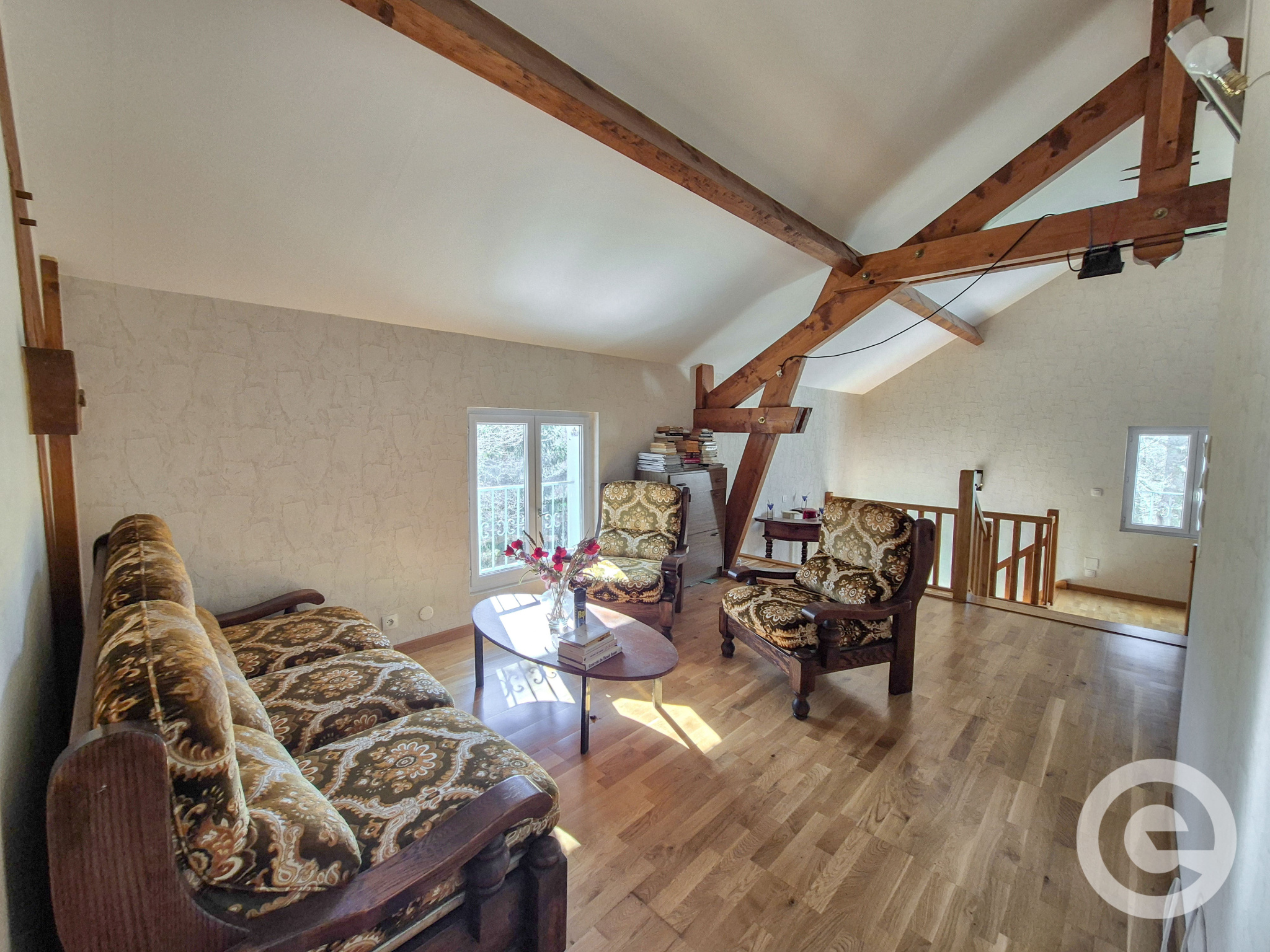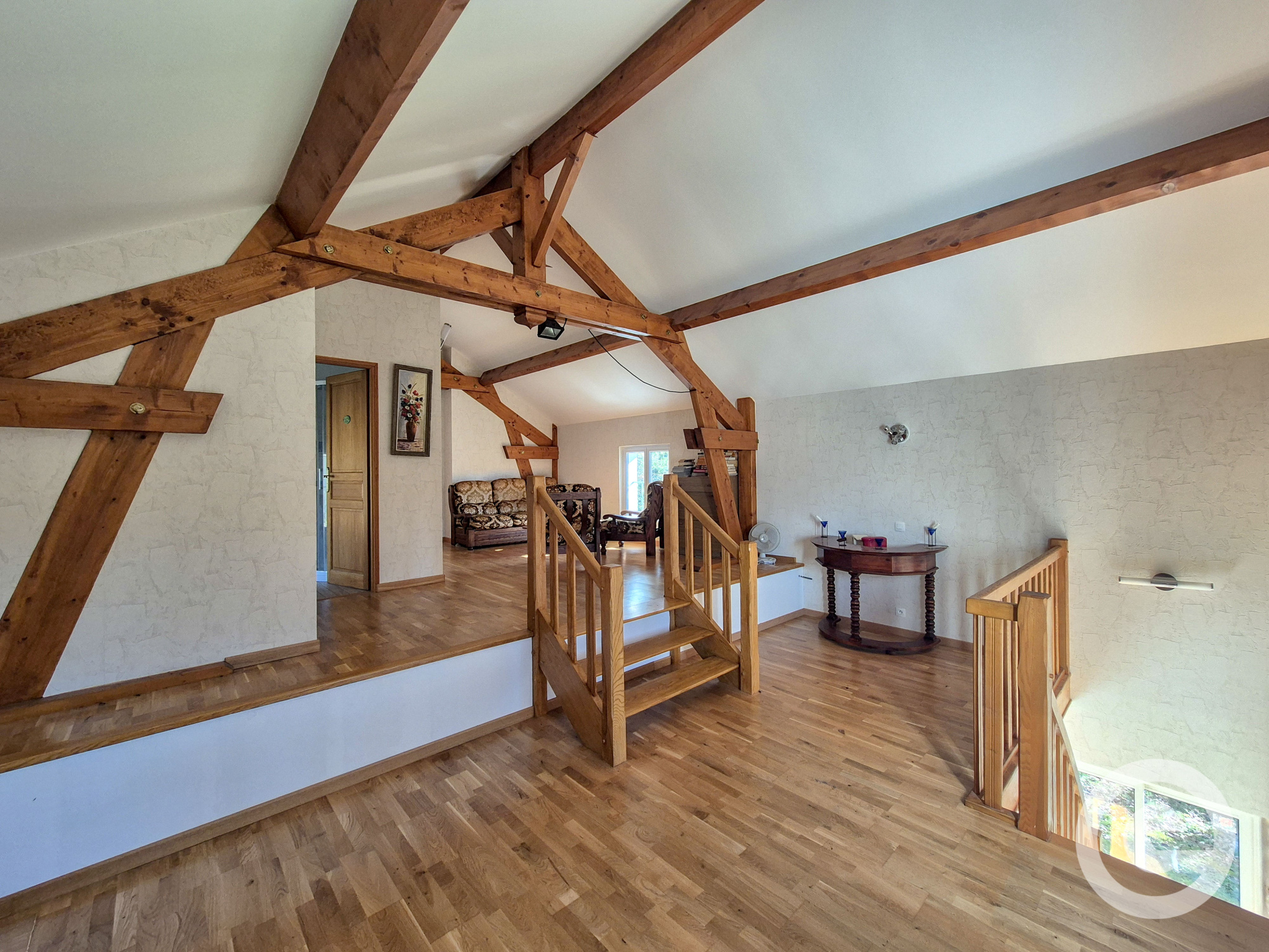 À l’étage, une grande pièce palière de 40 m² offre un bel espace pouvant faire office de bureau, salle de jeux ou coin détente. Vous y trouverez également un WC indépendant, une salle d’eau de 6 m² ainsi que deux chambres confortables de 11 m² et 13 m².