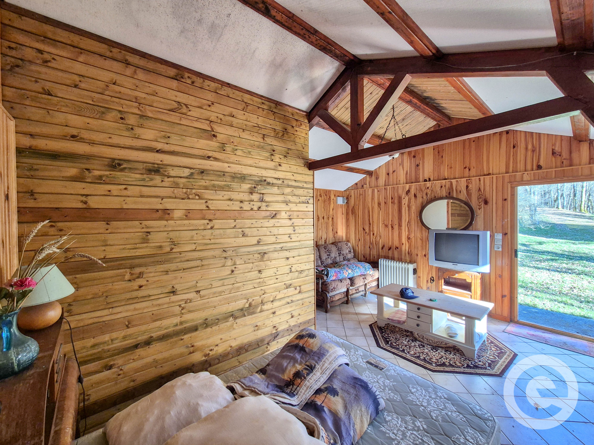 La propriété comprend également un chalet indépendant de 19 m², composé d’une chambre et d’une salle d’eau avec WC, idéal pour accueillir famille, amis ou envisager une activité de location saisonnière.